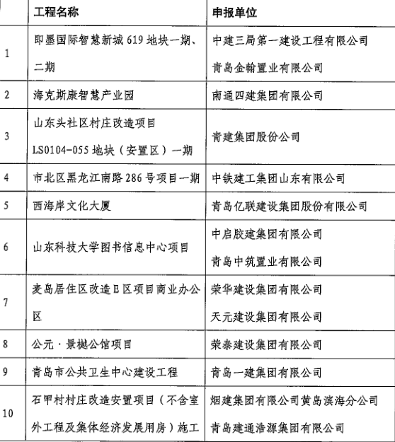 轉(zhuǎn)發(fā):關(guān)于公布2020年度青島市智意建造科技示范工程名單的通知