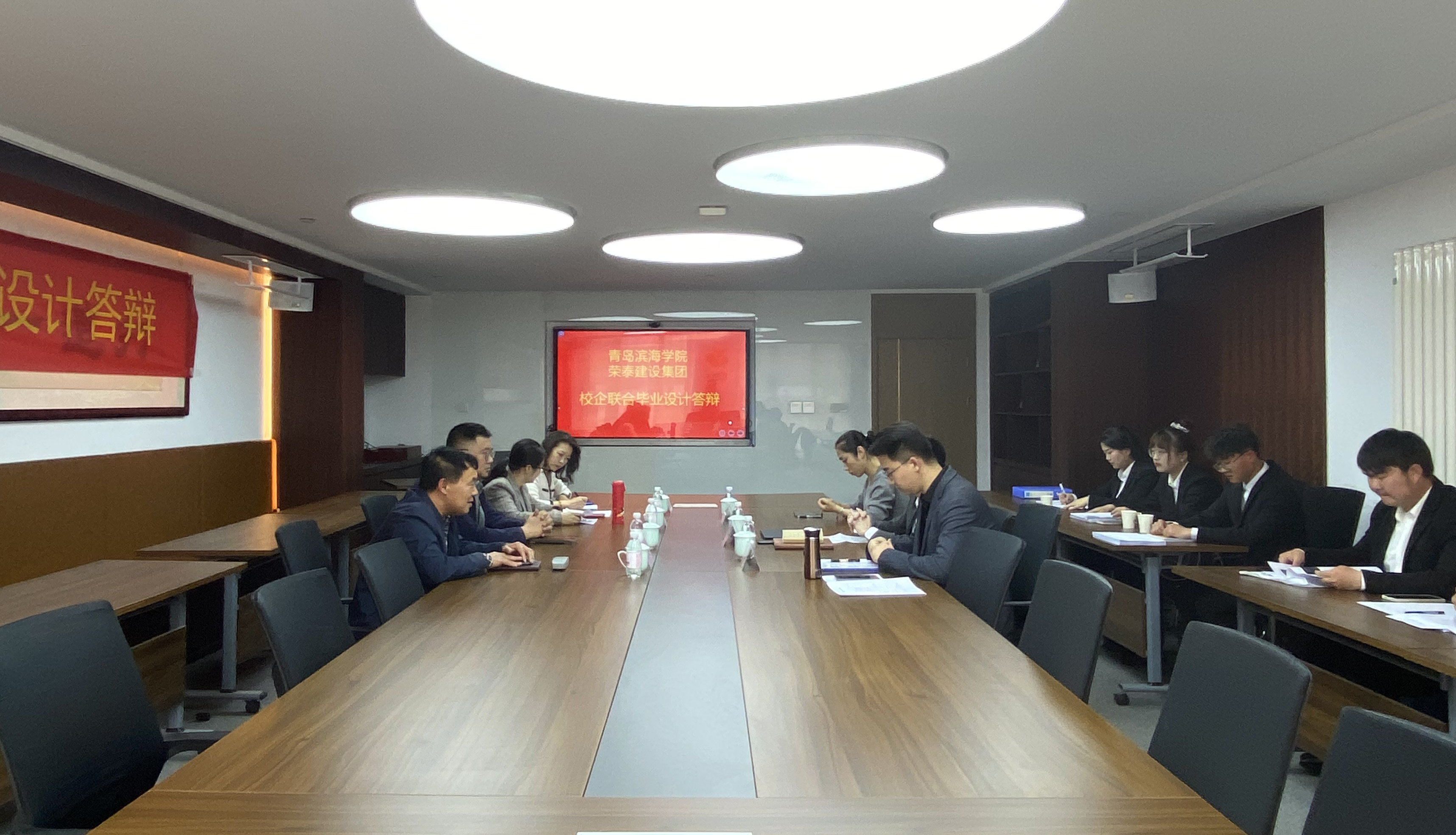 4月21日下午,在榮泰建設(shè)集團(tuán)有限公司會議室,由企業(yè)內(nèi)部專家和青島濱海學(xué)院老師共同組成的校企聯(lián)合答辯委員會,為6名畢業(yè)生舉行了校企聯(lián)合畢業(yè)設(shè)計答辯,這標(biāo)志著校企培養(yǎng)新模式取得了階段性成果。