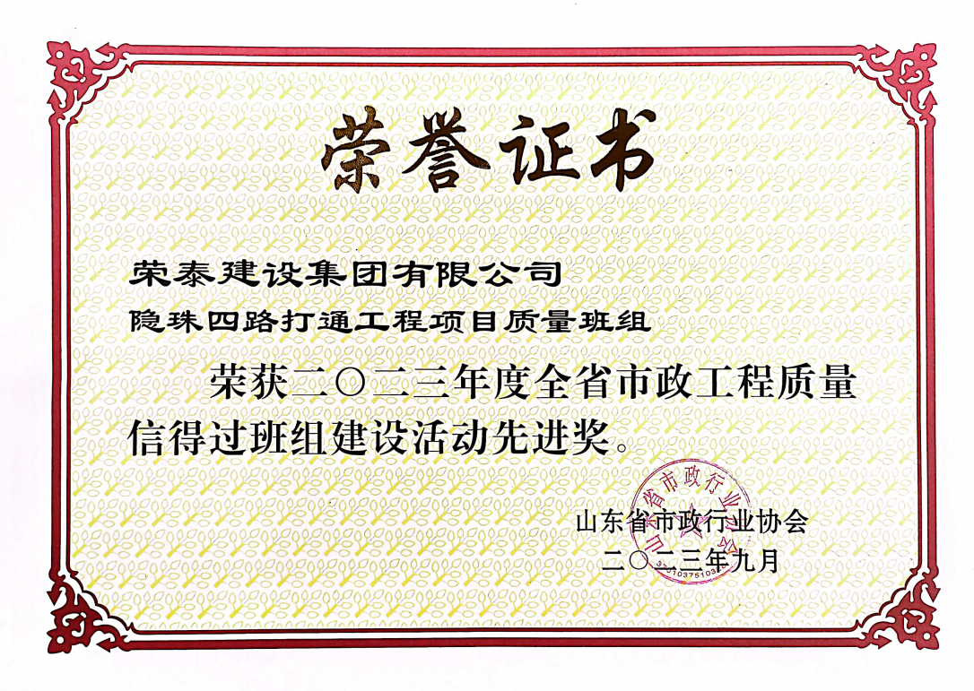 全省市政工程質(zhì)量信得過班組